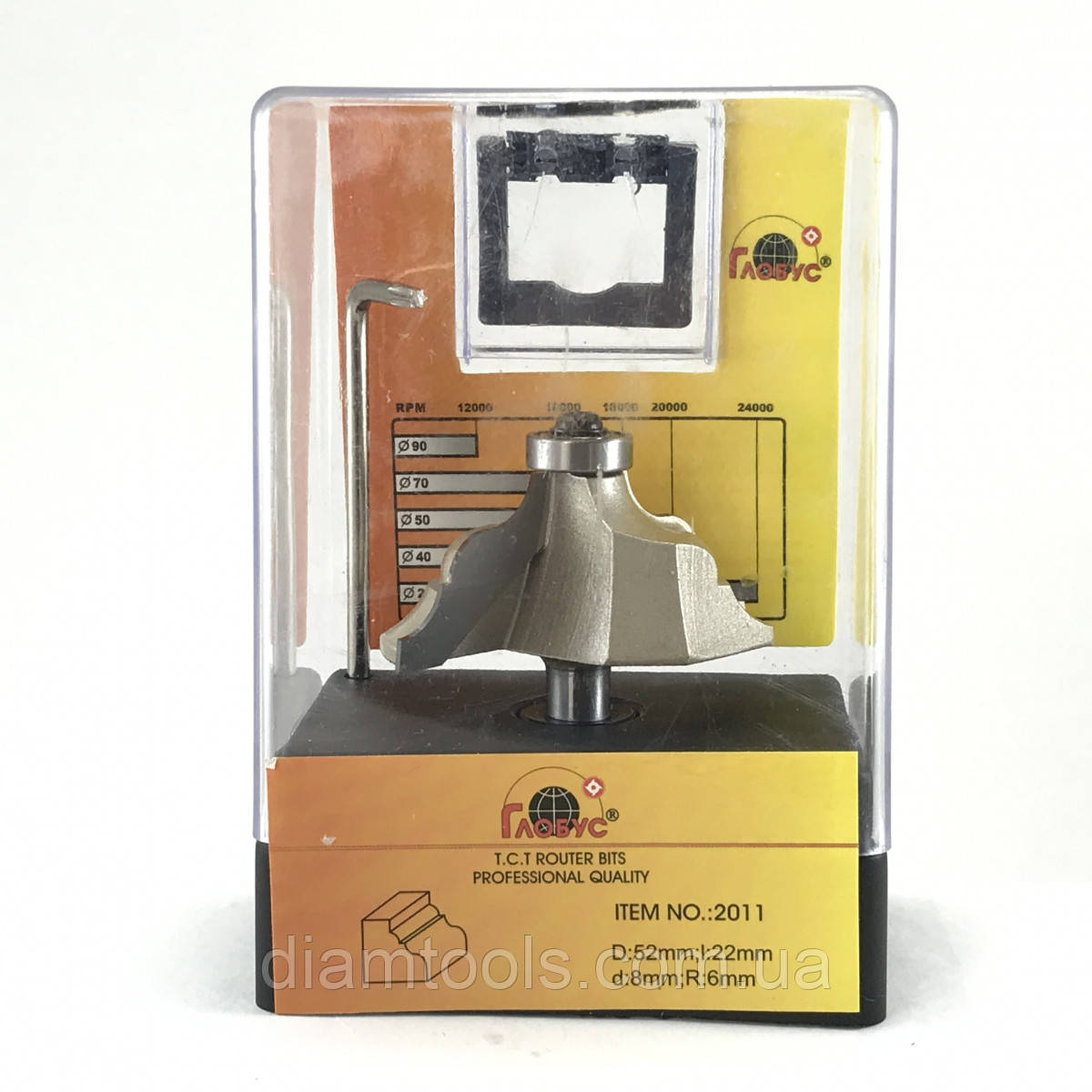 Фреза кромкова калювальна Глобус 2011 D52 d8 L57 h22 R6