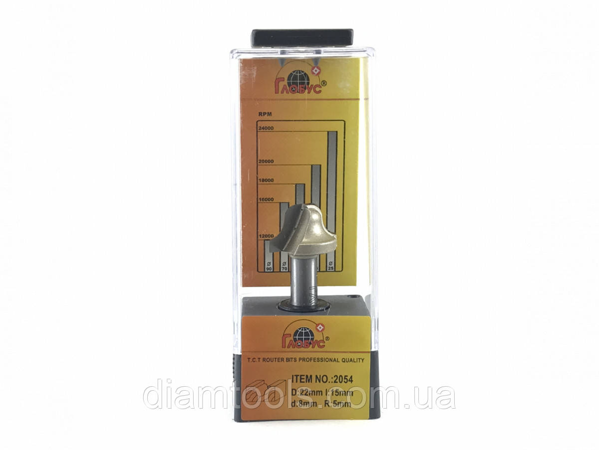 Фреза пазова фасонна Глобус 2054 D22 d8 L50 h15 R5 виготовлена з твердого сплав твердістю 56HRC. Фреза призначена для обробки твердої та м'якої деревини. Фрези цієї серії мають високий ресурс.